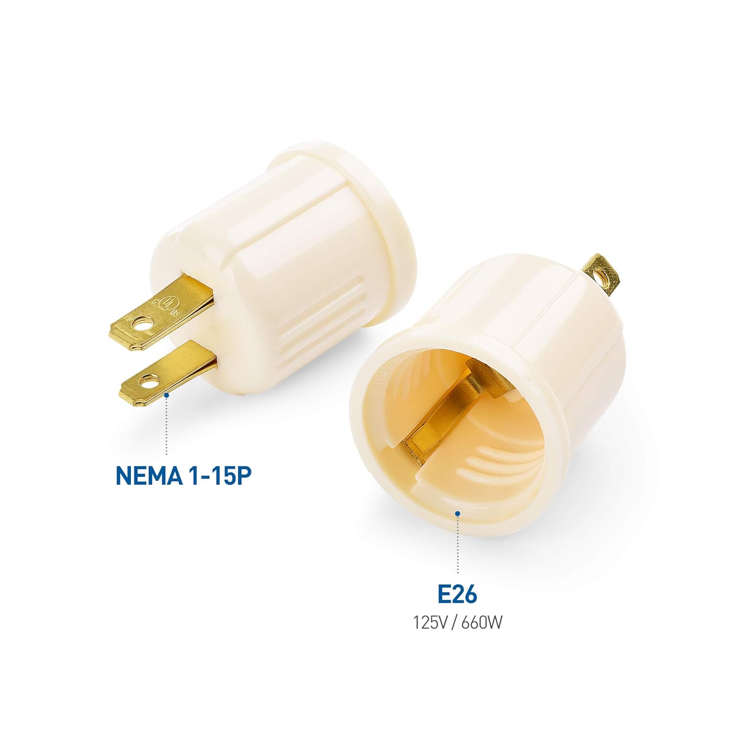 • Light bulb outlet converts a single AC outlet into a light fixture; The plug in light socket is compatible with a standard E26 light bulb screw base for LED, incandescent or fluorescent light bulbs