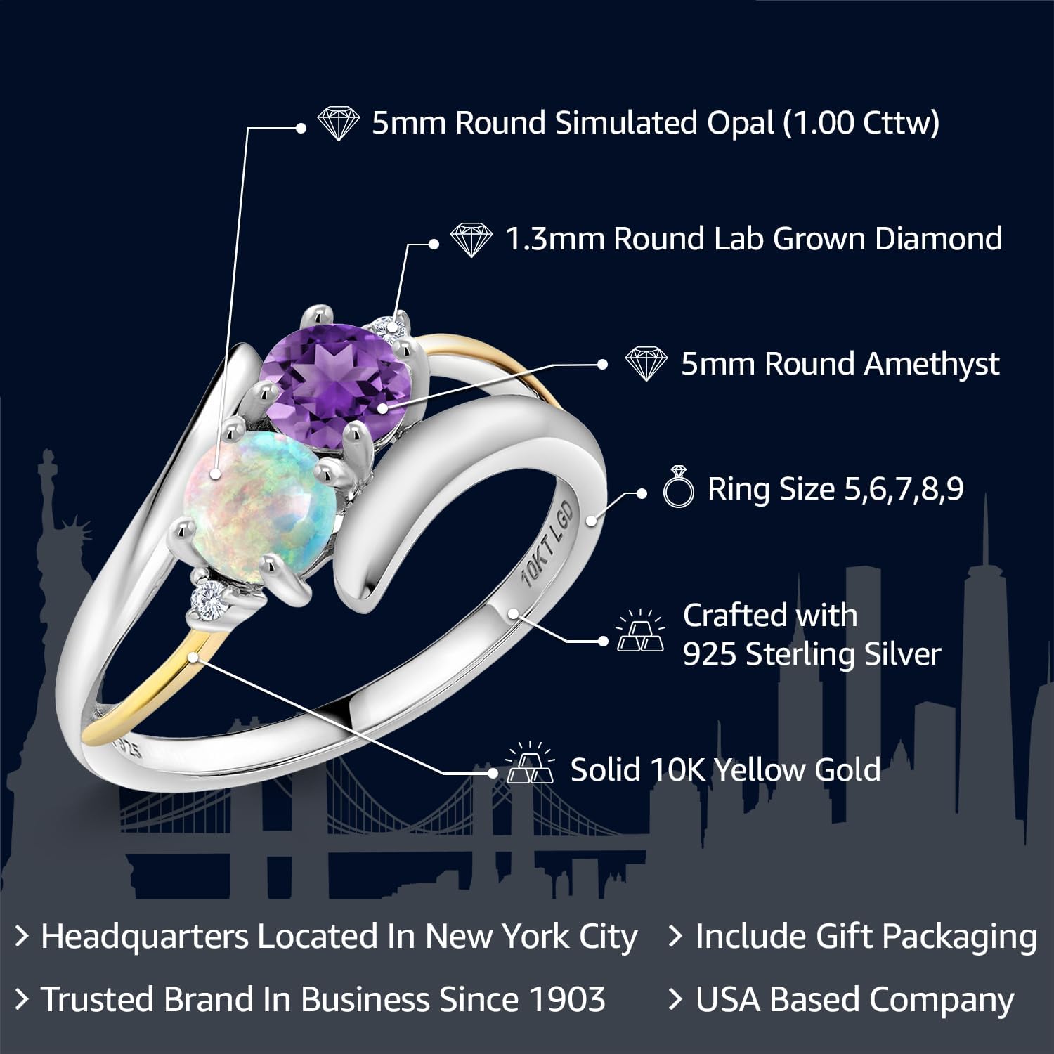 | Gem Type | Amethyst, Opal, White Lab Grown Diamond |