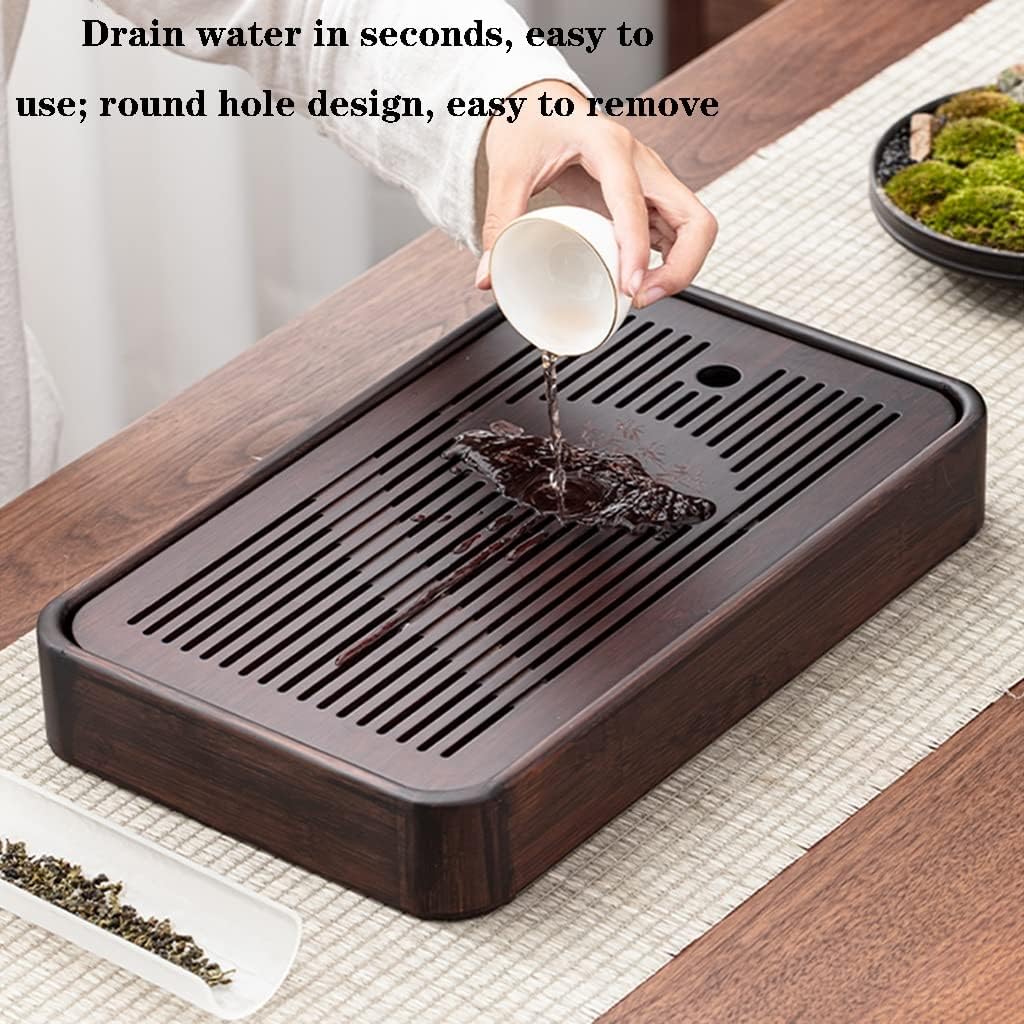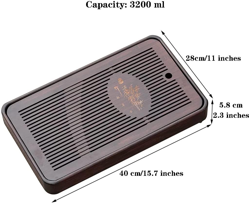 1. The tray can store water, so there is no need to worry about getting wet or dirtying the tabletop. 2. Made of natural material with smooth surface, burr?free and not easy to crack. 3. The tea tray is exquisitely crafted and has a unique shape, which is very suitable for Kung Fu tea. 4. There is a protective pad at the bottom to prevent slip and protect the desktop. 5. The teapot holder is simple and practical, and the tray can place the bowl, teapot, cup, etc. Specification Name: Tea Tray Material: Color: Brown Size: 30*19*5.8 cm/11.8*7.5*2.3 inches 36*24.5*5.8 cm/14.2*9.6*2.3 inches 40*28*5.8 cm/15.7*11*2.3 inches Capacity: 1500 ml,2100 ml,3200 ml, Packaging: Tea Tray *1 Notice 1. Due to the different display screen, the color will be slightly different, this is not a quality problem 2. Since the size is measured manually, there will be an error of 1~2cm, please understand 3. There are many products in our store, please click on the brand name, you can see many unique styles