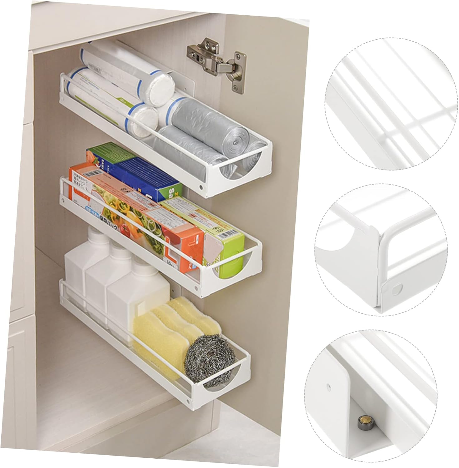 Package Include 1 × Storage Organizer Rack 1 × Glue 2 × Screws 2 × Expansion Tubes 4 × Screw Nuts Characteristics -Color:White kitchen cabinet rack -Material:Carbon steel metal spice organizer - Size: 35.00X12.00X5.50cm/13.76X4.72X2.16in handle - Owning the strong wear and break resistance ability, the kitchen cabinet organizer is very layer. - The rack is designed to be pulled out, which is more convenient to use than other normal storage organizers hanging. - The installation is very easy and convenient, which will not take up much effort, easy to install closet shelf organizer. - It uses a guardrail design to prevent tableware from accidentally falling, you can use with confidence retractable sink storage rack. - The storage shelf is in workmanship, beautiful and , can match your modern designed kitchen rotating.Goods Informationwire storage has a wide range of application, suitable for kitchen under sink, cabinet and so on.under sink organizer With sliding design, it allows you to easily access the item you need in the cabinet, very convenient to use.under shelf drawer The kitchen storage organizer has enough capacity, which can meet your different storage needs