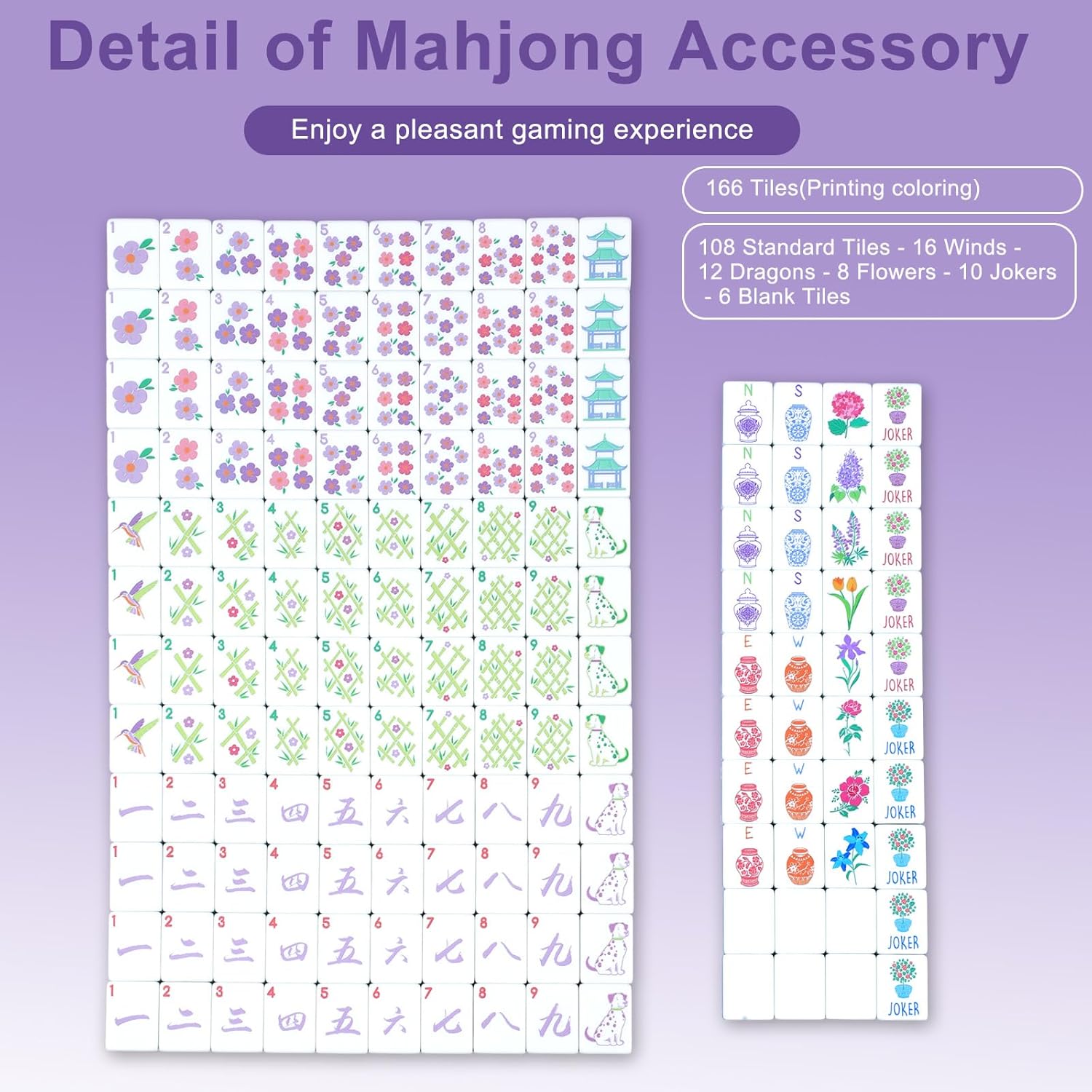Features: Durable for Long Use: Crafted with care, these American mahjong tiles are built to withstand regular use. They stay in good shape even with frequent play, providing consistent enjoyment for a long time. Easy to Store: The compact size of these tiles makes storage simple, keeping them in a bag or box without taking up much space. This ensures your mahjong set stays organized and ready for your next game session. Specifications: Material: plastic Color: purple base Size: about 1.2 inch/3 cm Package includes: 1 x American mahjong set Notes: Manual measurement, please allow slight errors on size. The color may exist a slight difference due to different screen displays