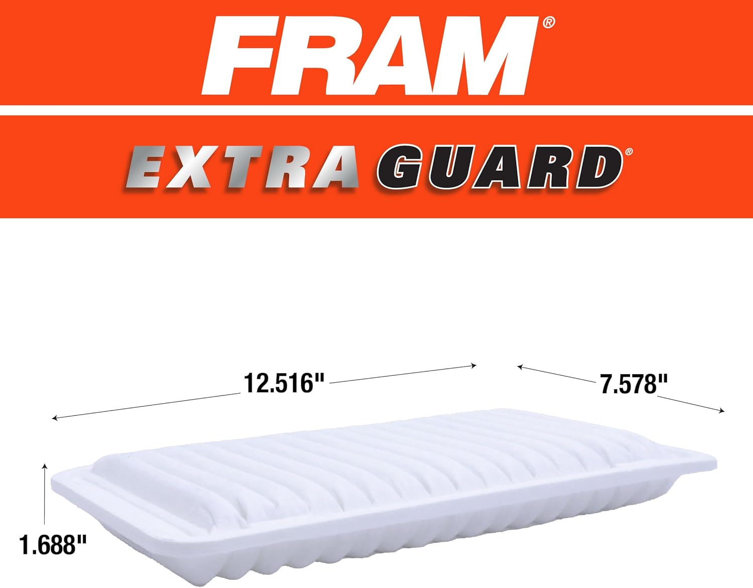 FRAM Extra Guard Air Filters are engineered with an advanced filter media that has been through rigorous testing and have been proven to provide 2X the engine protection* than the average leading standard retail brand air filter. 12,000 miles change intervals helps prevent decreased acceleration and horsepower while helping improve overall performance. FRAM engineering laboratories defines the air filter category by providing a clear choice over other filters. Follow recommended change intervals as noted in your vehicle's owner's manual. *Based on Fram Group testing of filter efficiency of models CA4309, CA8755A, CA8039, CA326 and CA6479 and their standard retail brand equivalent under ISO 5011.