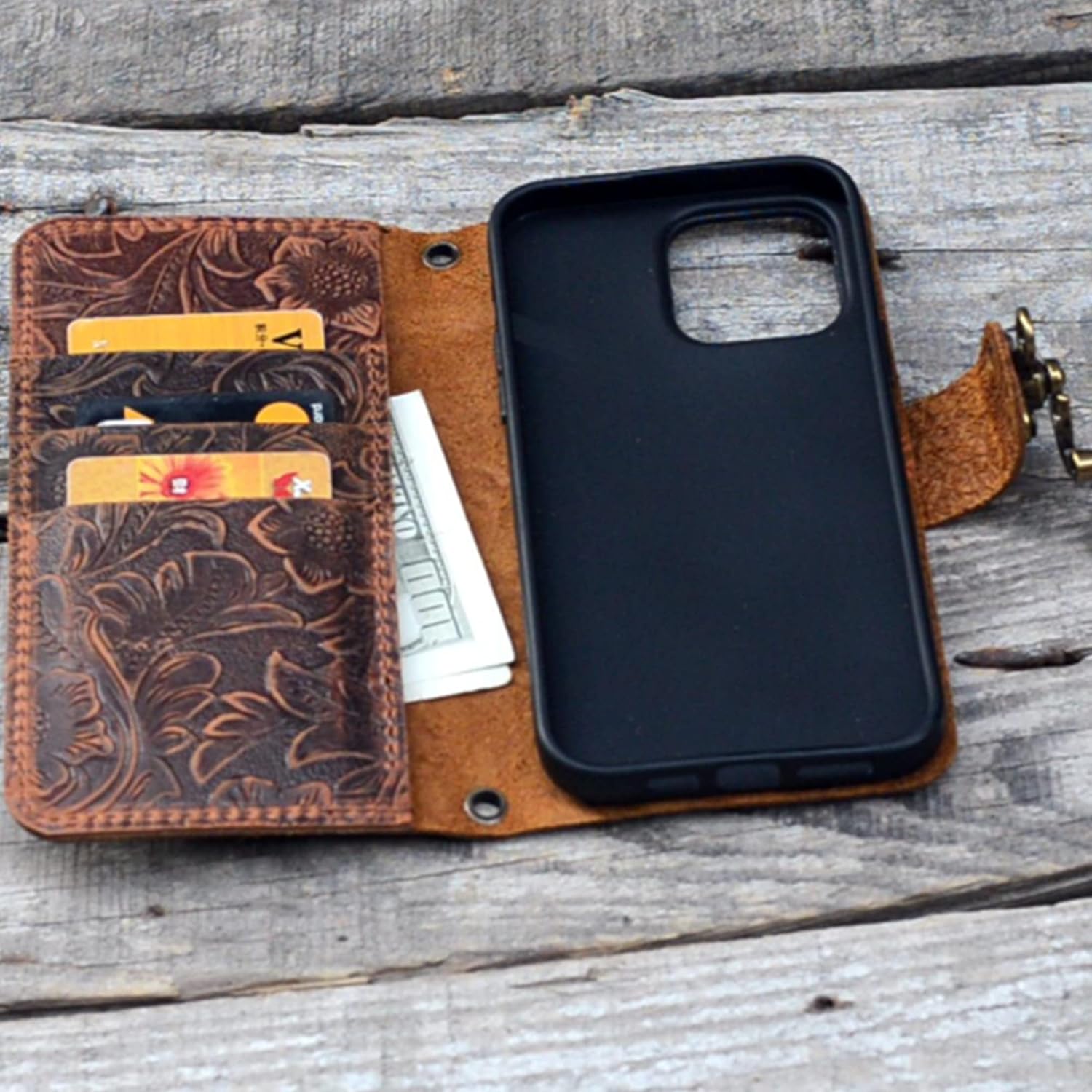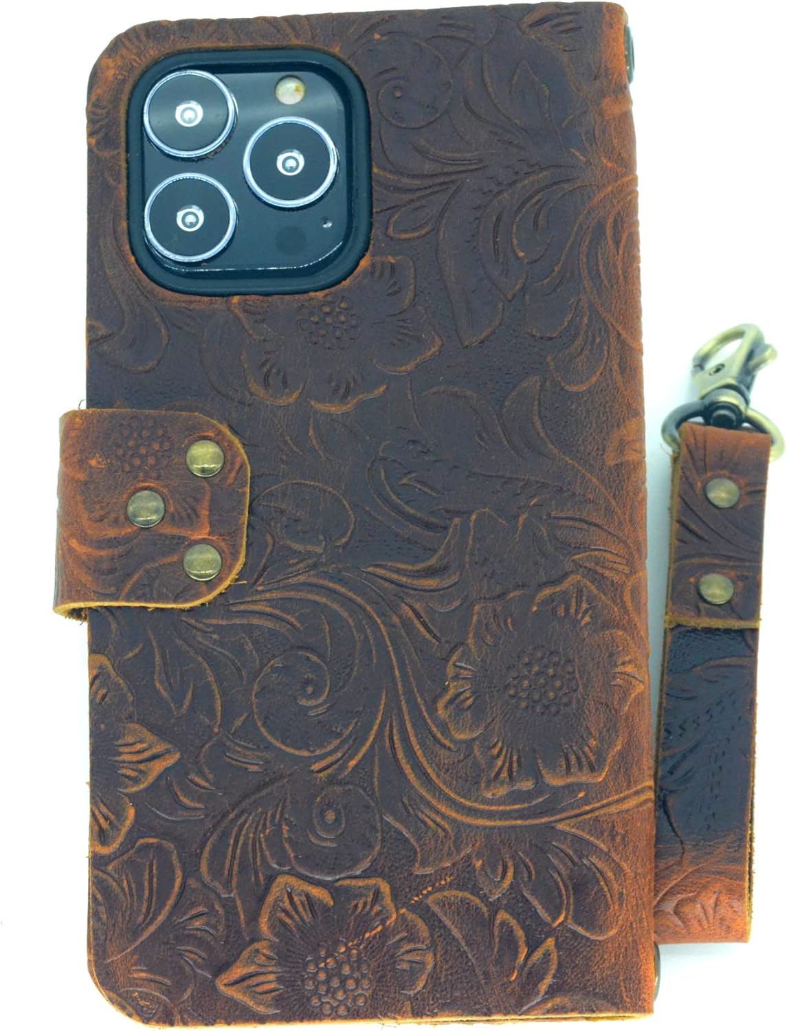 14 Pro Handmade Genuine Distressed Leather Wallet Case Flip Cover with Wristlet Brown