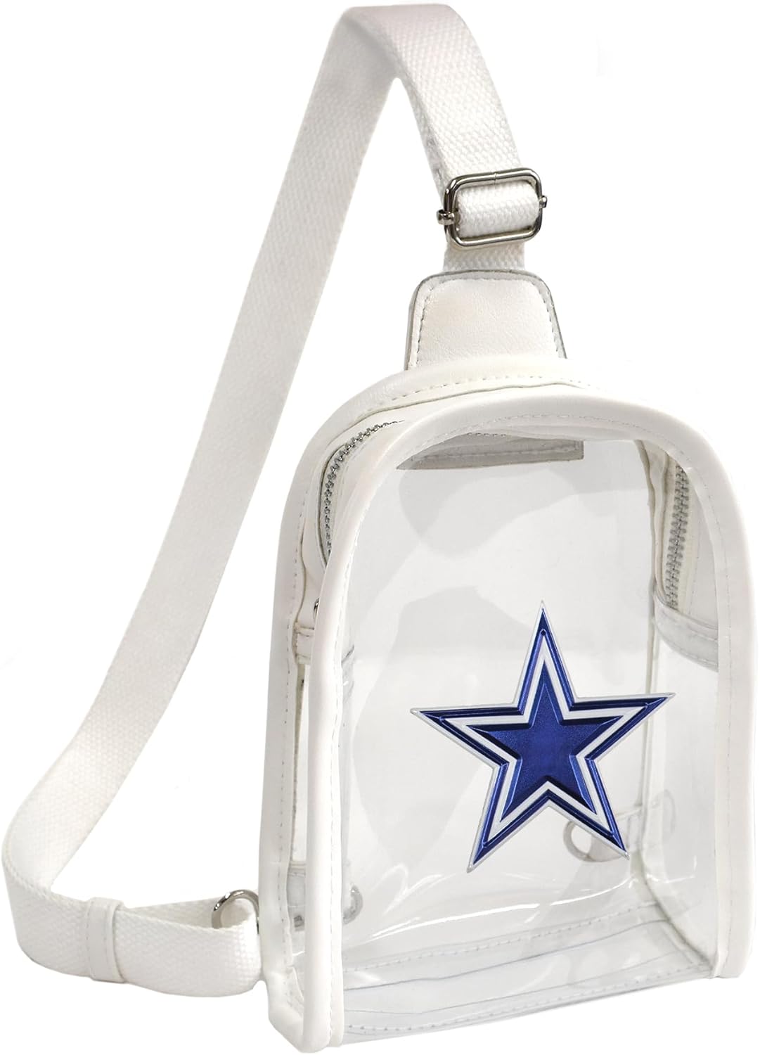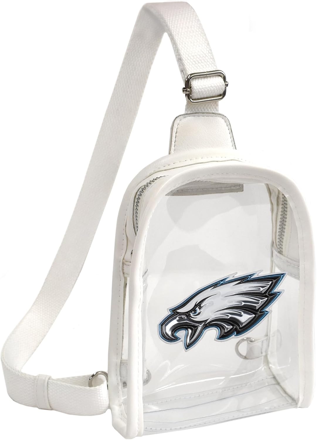Stay stylish and compliant with the Little Earth Clear Mini Sling Bag, designed for both convenience and security. Crafted from durable PVC with sleek polyester trim, this mini bag offers a modern, clear design that's perfect for stadium events, concerts, or other venues with security regulations. The adjustable cotton straps ensure a comfortable fit, while the sturdy strap hooks on either side make it easy to carry and adjust.Featuring nickel-plated hardware for added durability, this compact bag comes in a classic white trim, and is ready to showcase your team spirit with a full-color team logo decoration. With dimensions of 5.5” (L) x 2.5” (W) x 7.5” (H), it's the ideal size to carry your essentials while adhering to most stadium policies.