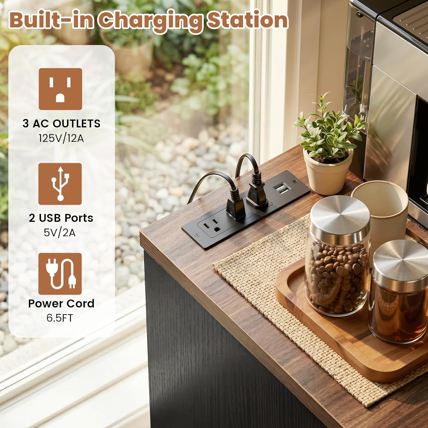 | Assembly Instructions Description | Attach legs with screws. Tighten using the provided tool. Connect side panels to the back panel using dowels and cam locks. Insert shelves into pre-drilled holes. Attach doors using hinges and screws. Plug in the power cord for the built-in charging station. |