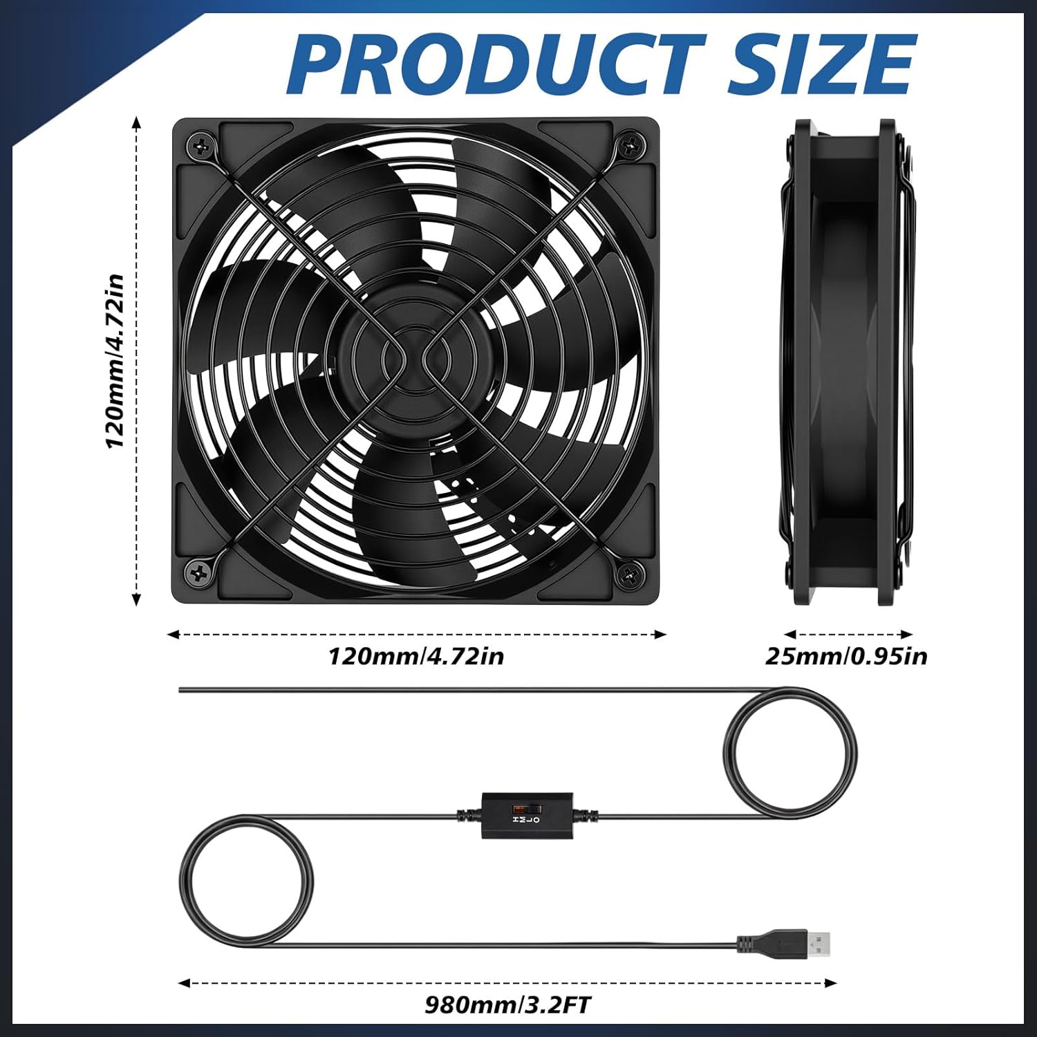 Features: USB Powered: fans for PC can run these functions directly on your laptop or electronic device without the need for an external power source. High Performance: effective cooling performance, no heat accumulation, high router cooling efficiency. Specifications: Size: 4.72 x 4.72 x 1.4 inches Material: PBT Color: black Package Included: 4 x Computer fans Warm notes: Manual measurement, please allow slight errors in size. The color may slightly differ due to different screen displays
