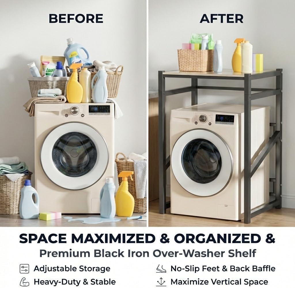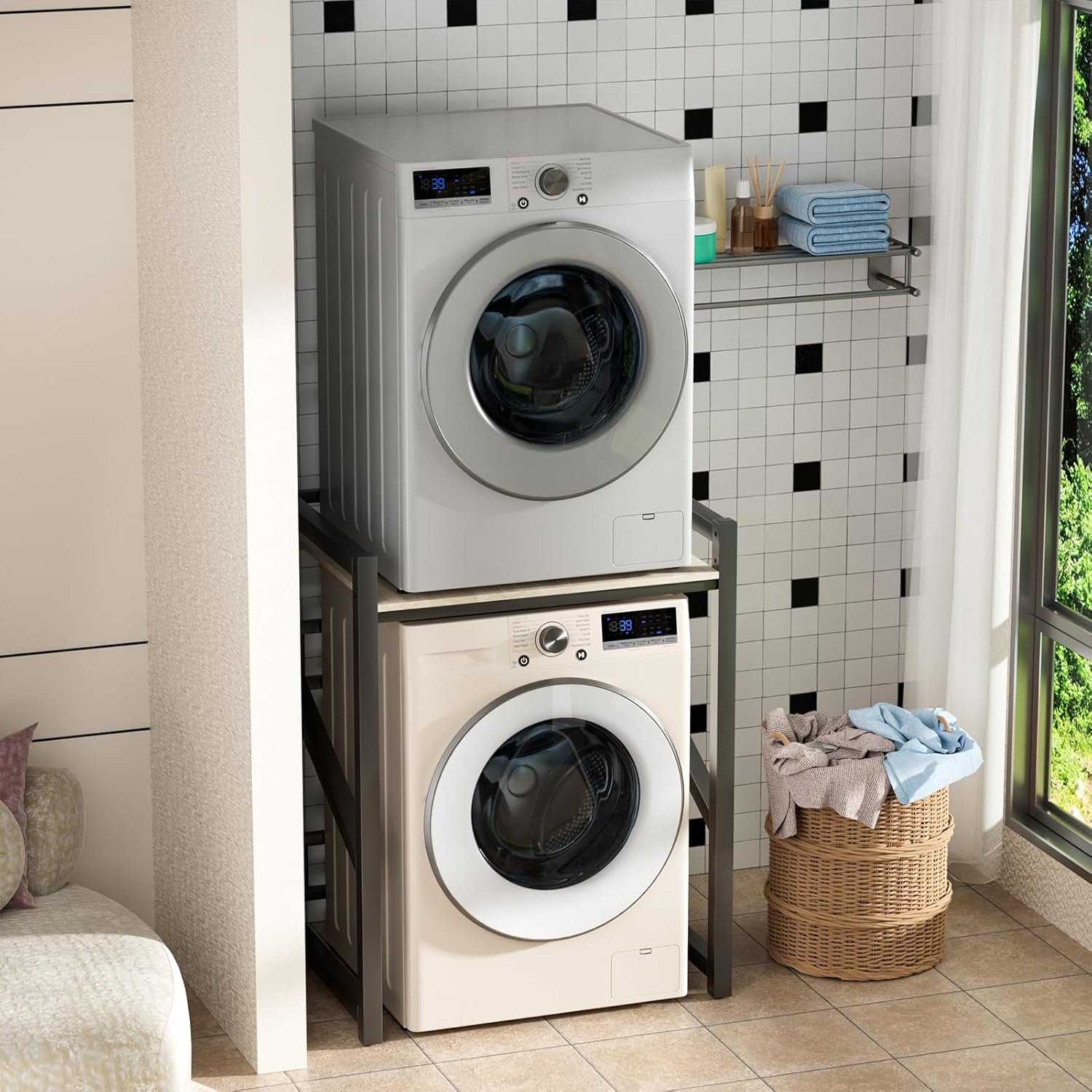Description:Item Name: Washer Dryer ShelfMaterial: IronFeatures: Height Adjustable, Freestanding, Strong Load-bearingSize Details:L: 73cm/28.74", W: 63cm/24.8", H: 105cm/41.34" (Approx.)Notes:Due to the light and screen setting difference, the item's color may be slightly different from the pictures.Please allow slight dimension difference due to different manual measurement.Package Includes:1 x Washer Dryer Stand